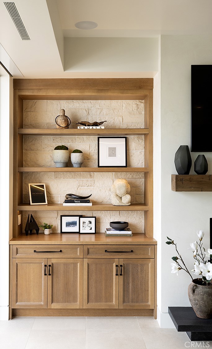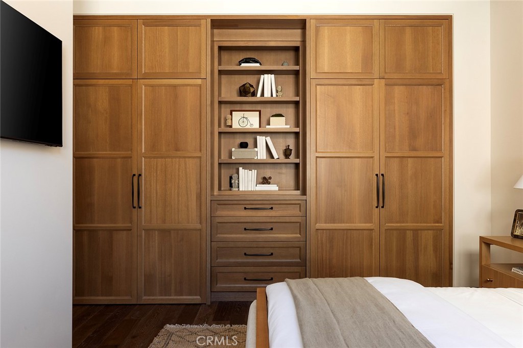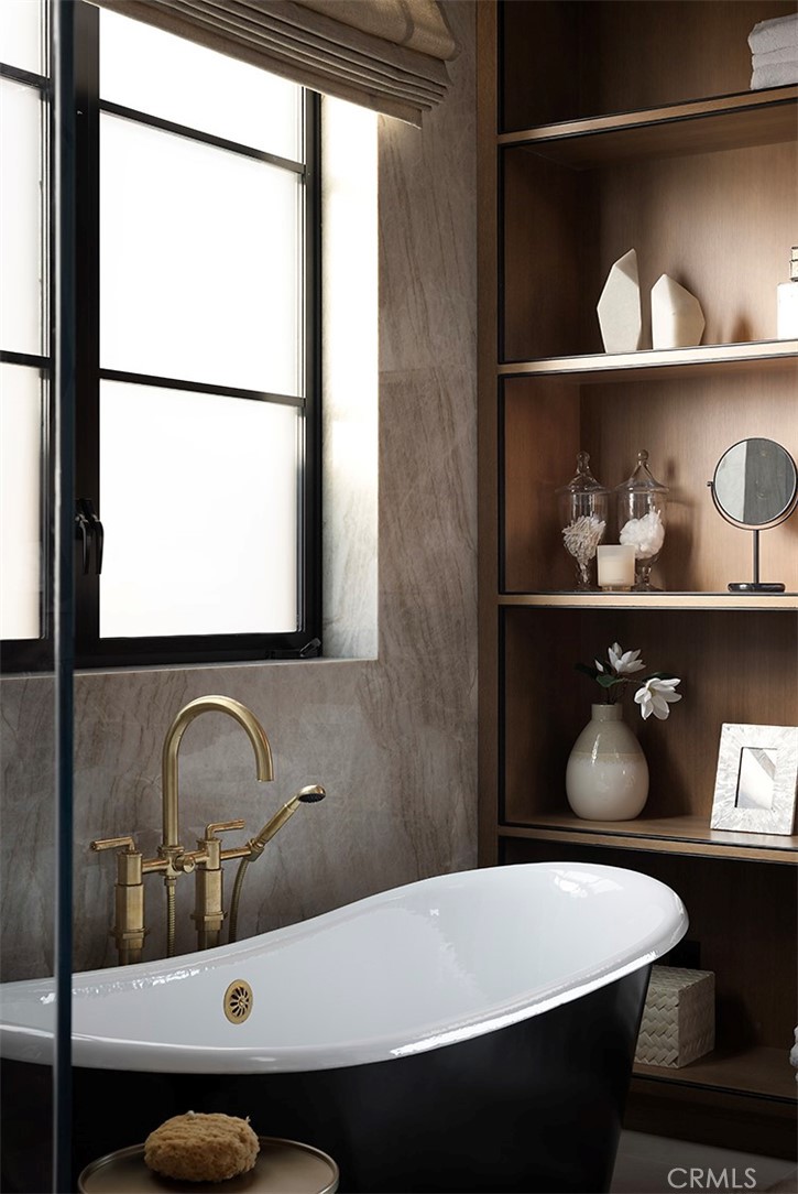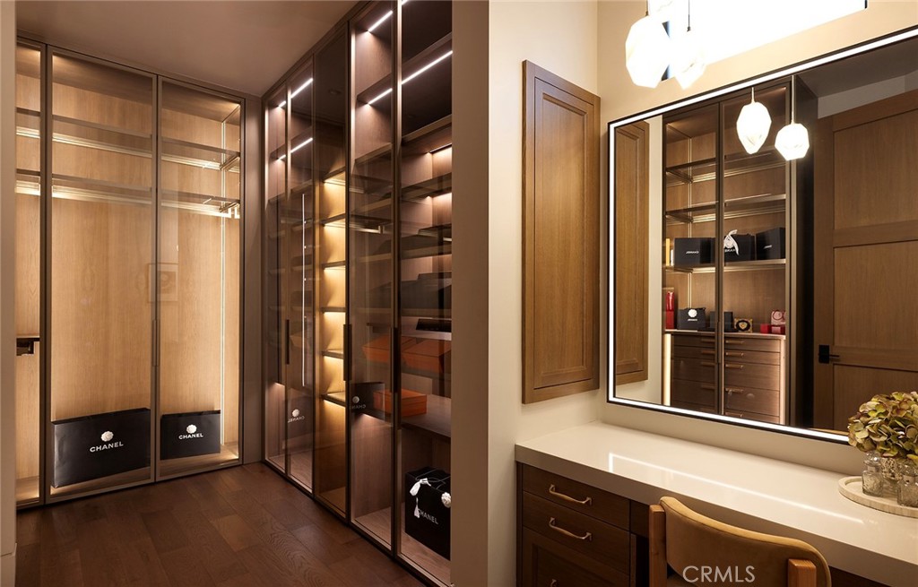 Each of the home's bathrooms exudes luxury, with handcrafted tiles, Waterworks burnished brass fixtures, and high-end TOTO washlets. The primary suite is a true sanctuary with custom white oak beams, and a Nero Lactea marble fireplace mantle, and custom his and hers walk-in closets imported from Italy that rival most designer showrooms.