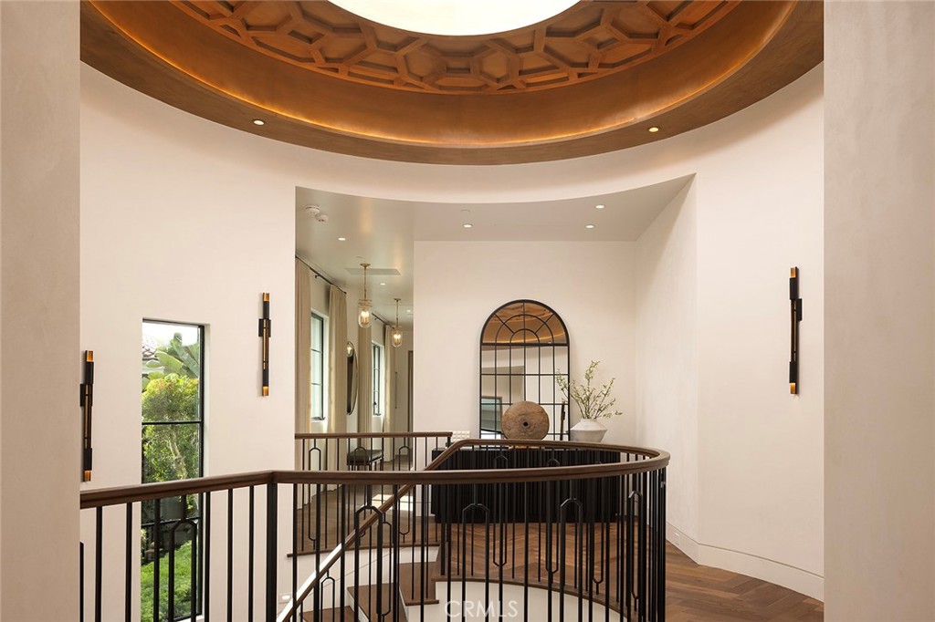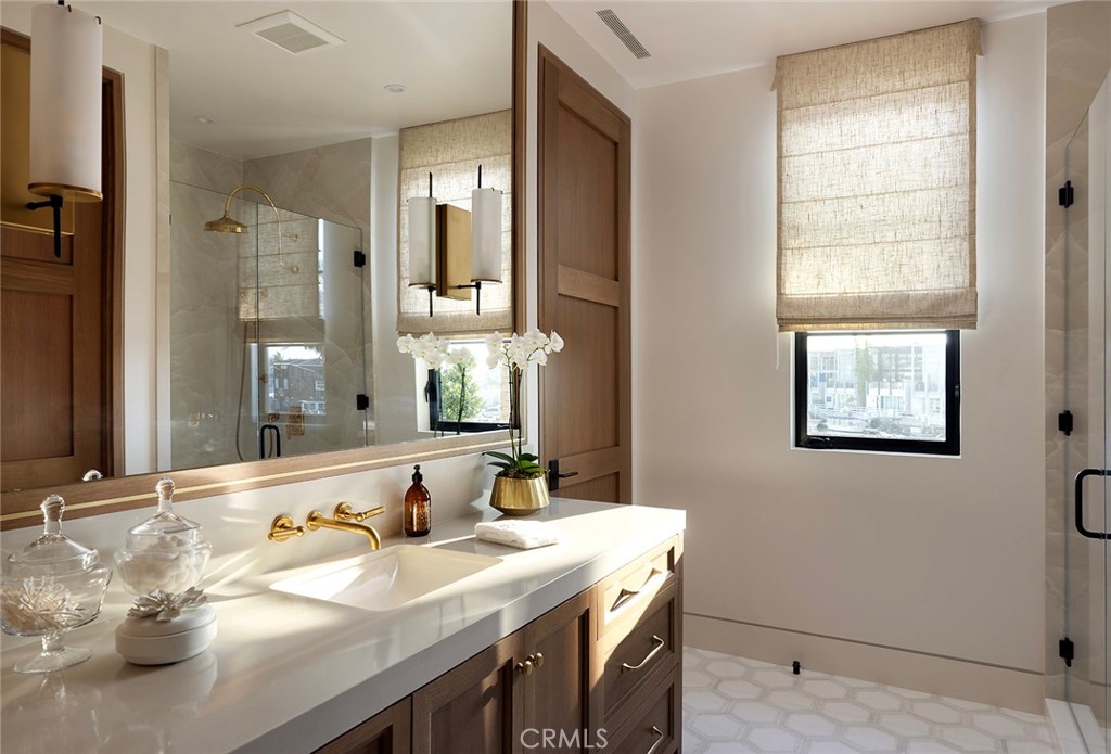 This exceptional waterfront custom home located in the Lido Village features unparalleled craftsmanship and luxurious designer finishes throughout. The Santa Barbara contemporary style sets the new standard for Newport waterfront luxury. For the yachting and culinary enthusiast alike - mere steps from the front door are some of the best restaurants and nightlife in Newport, or venture to the backyard where the 75-foot dock awaits for ocean adventure. The exterior is graced with white limestone and expansive Arcadia windows, framing picturesque water views from both the front and rear of the property.