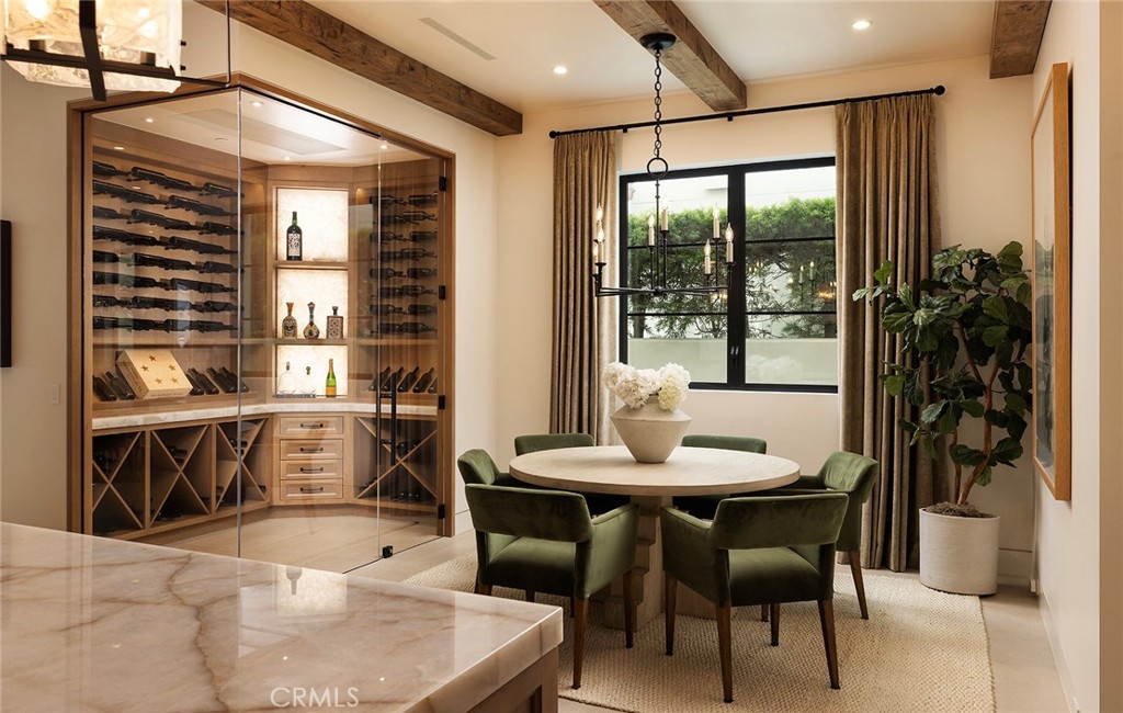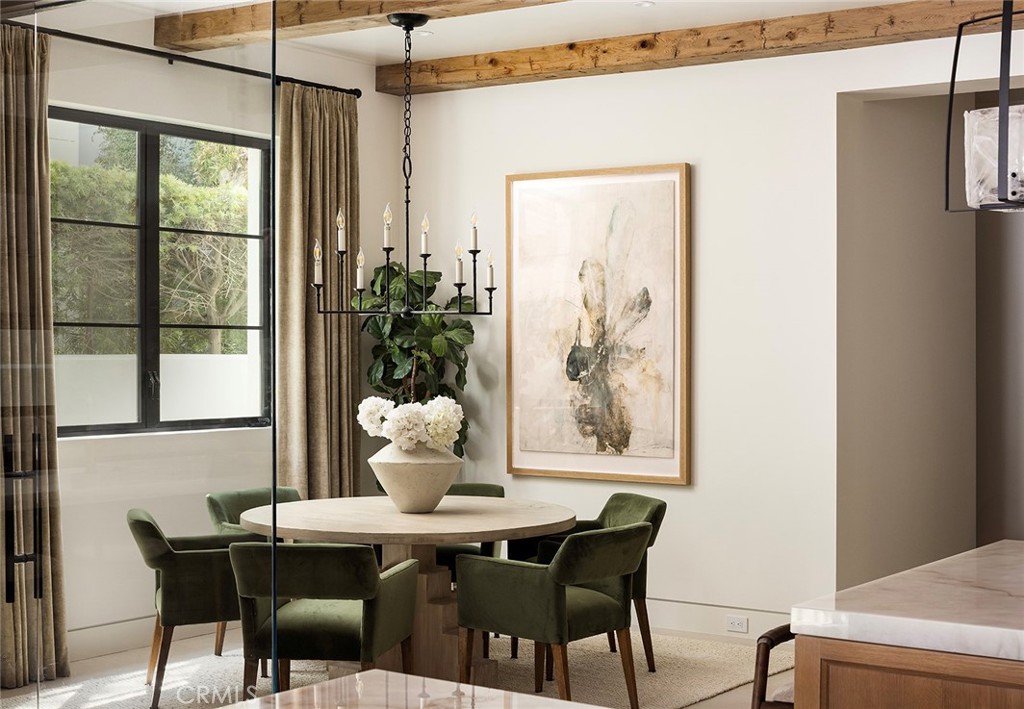 Spanning over 5,000 ft, every inch of this property is the epitome of attention to detail and master of craftsmanship. With a push of a button, the Arcadia power slider doors usher in the bay breeze, seamlessly transforming the living room into true indoor/outdoor bayfront living. The living spaces boast stunning European oak herringbone and straight plank floors, with Venetian plaster walls and custom white oak beams adding warmth and texture. The gourmet kitchen is a chef's dream, showcasing Cristallo Supreme slabs, hand-blown glass pendants, Wolf and Sub-Zero appliances, and a hand-plastered range hood. Custom white oak beams and cabinetry complete the sophisticated aesthetic, while the adjacent walk-in pantry features hand-painted marble backsplash for added flair. With Lutron lighting and integrated Sonos speaker system throughout the whole house, guests will always be greeted with the perfect combination of light and sound.